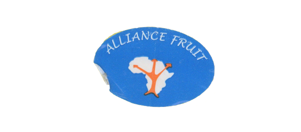 As the text, ‘Alliance Fruit’ suggest, the illustration in the sticker appears to be a country shape and arrows coming together and linking different parts of the country. On the other hand, the arrows also resemble a tree trunk and several branches with the country shape in the back as leaves.