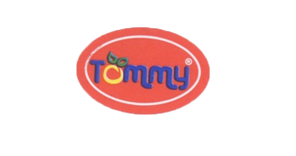 A colourful fruit sticker with orange fill and white stroke. The yellow fruit illustration with green leaves sits with the blue text.